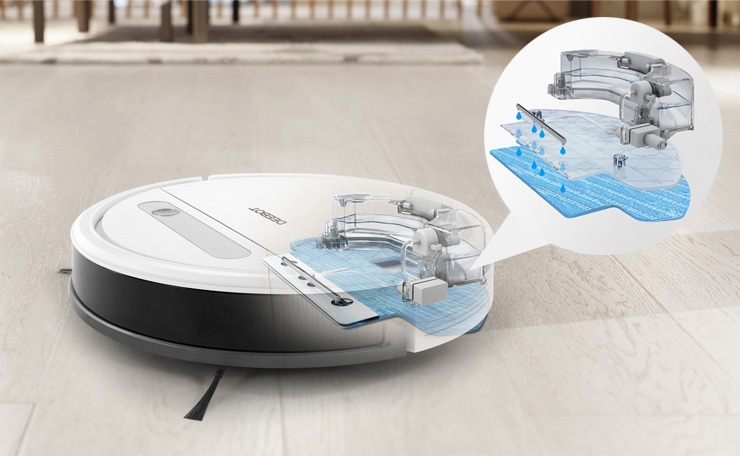 Robot có thể đồng thời làm sạch nước và hút bằng công nghệ độc đáo. Hơn nữa, nó có thể tự động mở và đóng hệ thống lau nhà theo sự kiểm soát lượng nước và sự khởi động và dừng lại của thân chính. Bên cạnh đó hệ thống lọc hiệu quả cao giúp giảm chất rắn lơ lửng trong không khí gây dị ứng và hen suyễn.